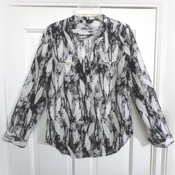 front pockets, fastened with square golden buttons - they are real but you can't keep much in them! sleeves also button at cuffs - neckline does not button closed