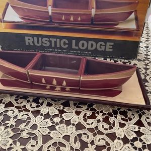 brand new in a box ship 🚢 server it’s a appetizer server 4 piece hand painted it’s a great gift for a fisher or a sailor .……….