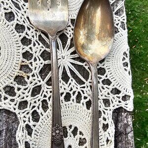 serving fork and spoon 1847 Rogers Bros plated silver Adoration pattern midcntry