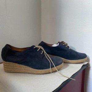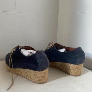 Lovely dark blue suede with espadrille platform shoes. Worn a handful of times, very gently used.