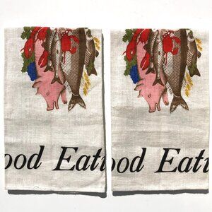 set of 2 vintage linen kitchen towel Christiana Campbell’s Tavern Good Eating Williamsburg Brooklyn.