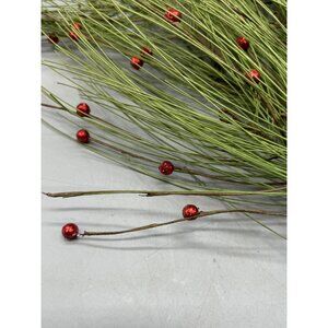 set 3 Artificial Pine green Branches Red Berries Christmas red shine balls 34"