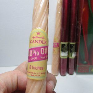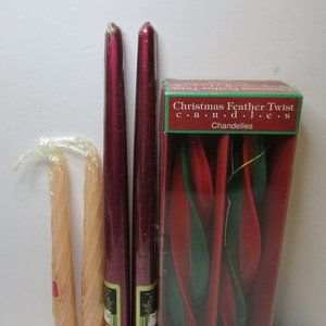 set 3 wax candles Hallmark twisted pink Colonial burgundy Christmas feathertwist