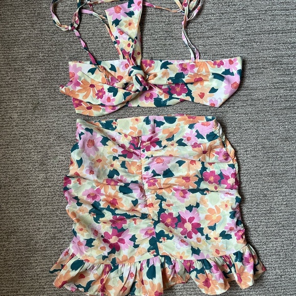 super cute set I got on vacation!! Size 4! Super cute with a skirt and bra top!!