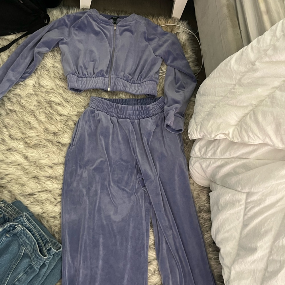 Zip up and sweats in the color purple and size medium from forever 21. Only worn once.