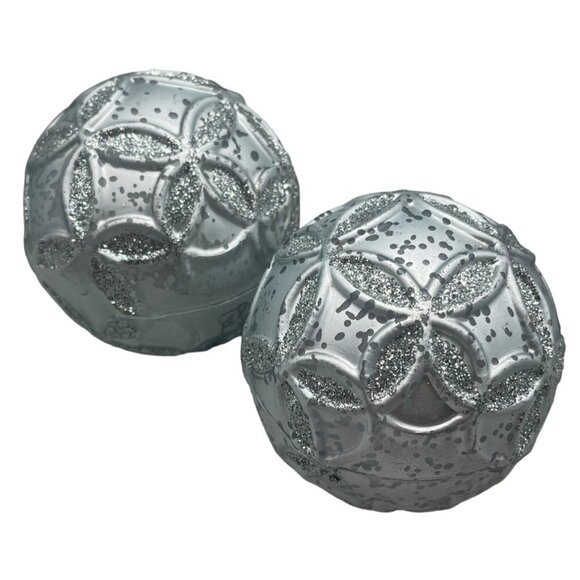 set of 2 Christmas ornament bulbs silver shine graphic assorted decor 3" READ
