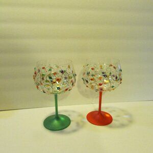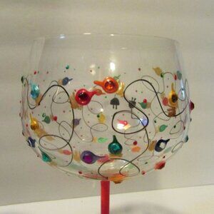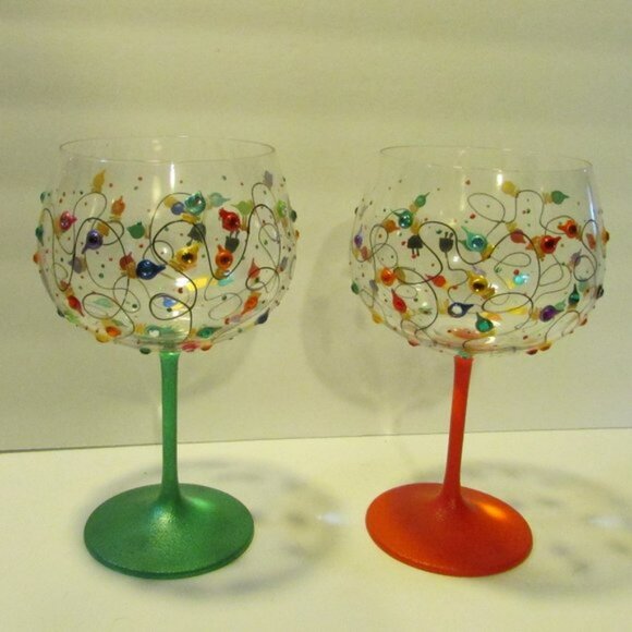 set of 2 painted wine glasses Christmas string lights Smithereens