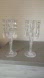 set of 2 vintage glass candle holders with bobeches, clear, glass, 10" tall