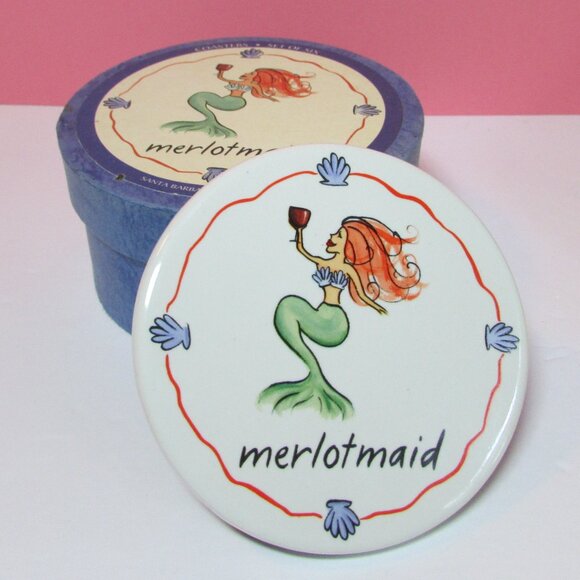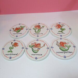 set of 6 wine drink cocktail mermaid ceramic coasters Santa Barbara
