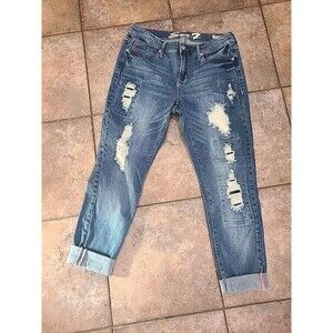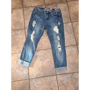 seven 7 girlfriend jeans size 8 blue stretch denim Cuffed Y2k Distressed