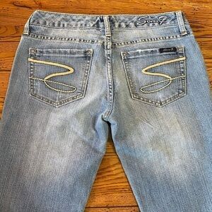 These jeans are in excellent condition. No issues at all. These are stretchy and comfortable.