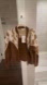 Stylish brown and cream cardigan sweater with a geometric pattern. Perfect for cozy days.