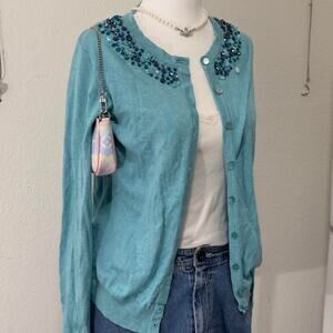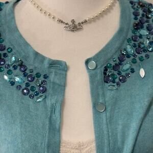 Y2K blue cardigan button up with rhinestones ੈ✩‧₊˚