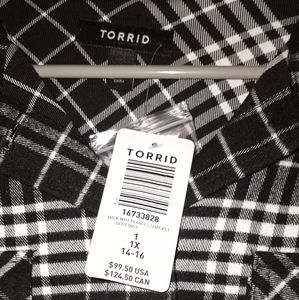 women's shacket black and white plaid with 4 pockets and waist ties. Size 14-16 New with tags thick material super cute ๐