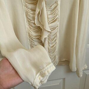 vintage sheer cream/white statement long sleeve blouse