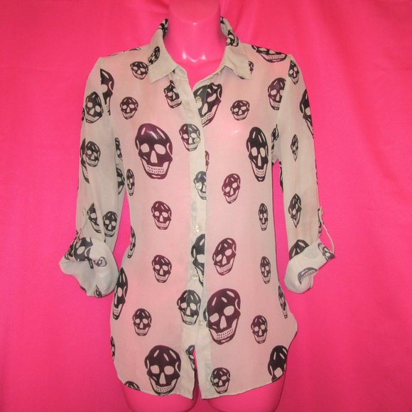 sheer skull top sexy skeleton shirt size medium goth top button down