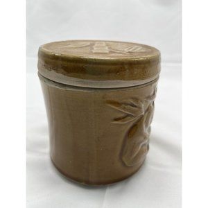 sheila Fournier tan pottery Tea canister with pandas and bamboo.