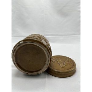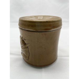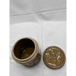 sheila Fournier tan pottery Tea canister with pandas and bamboo