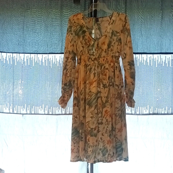 shein elegant floral print dress V-neck long sleeve elastic sleeves size: us 6 chest- 32" length-41 r1