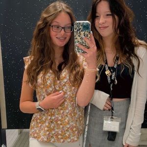 yellow floral print blouse from shein. i don’t see the size but i think it’s an xs or s