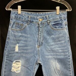 Size small (see measurements in photos). Lightly distressed ankle length jeans. Medium jean wash. Excellent like new condition.