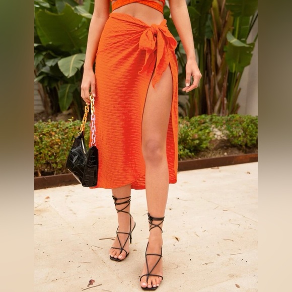 SHEIN Wrap Tie Side Textured Skirt in the color “Orange,” size 6 Medium. tried on & washed, but never worn 🧡