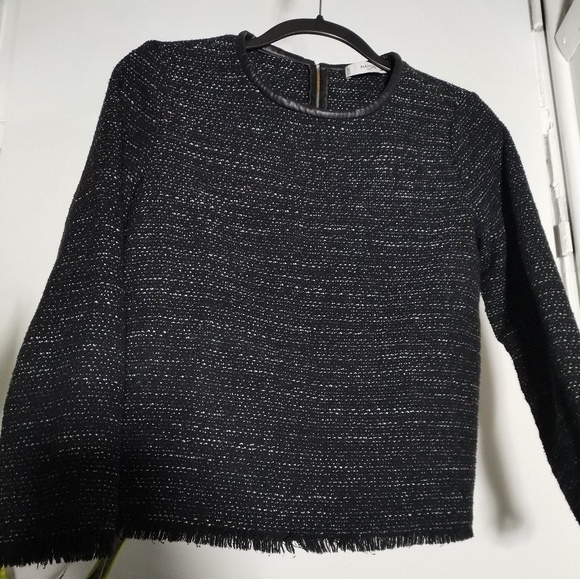 A versatile dressy top you can dress up or down .sure to get compliments as good as it's Classy Channel !! Material feels organic/ lightly rigid and the cut gives a nice defined silhouette. Also since it's a bit square, it'd be a good oversized option for a size small. Faux leather collar.half zipper back. Above hip length.
