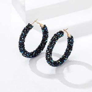 Absolutely stunning Bohemian dark blue shiny Glitter Hoop Round Circle Earrings for Women