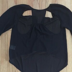 black quarter sleave shirt thats shorter im the front ans longer in the back. the back is semi open. only worn twice and in great condition