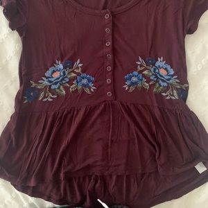 soft and cute maroon flowy bottom shirt! Lightweight and comfortable with pretty flower design
