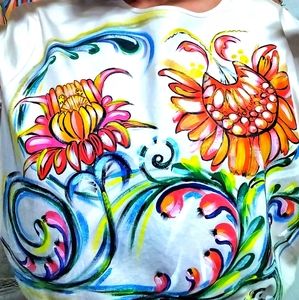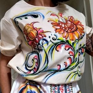 author's work! hand-painted, in a single copy, 100% cotton 100% handmade, the size is suitable for both S and M