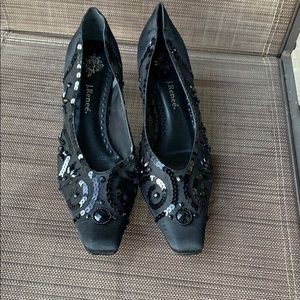 J.Renee textile uppers,satin mesh black stone heels good , sole