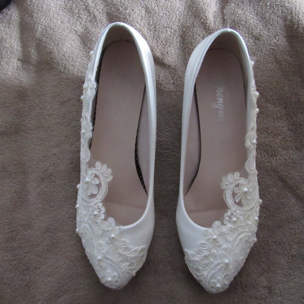 New size 7 white flats wedding shoes. Excellent condition