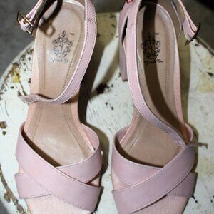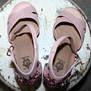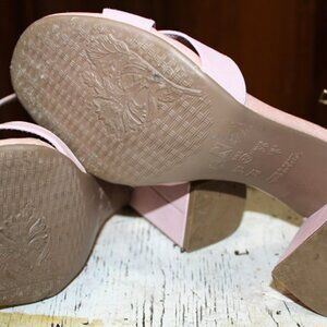 Pretty pink strap back sandals. Beautiful floral design on the back of the sandals. French Blu, size 6, 2 1/2" chunk heel. In good condition.
