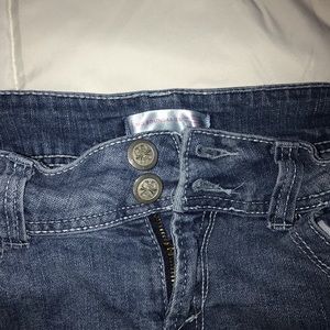 lightly worn mid rise (has two buttons, with a zipper)