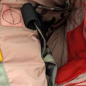 Gently used and in nice condition, large size with 2 handles and 1 shoulder strap. Camo print pattern with yellow handles.