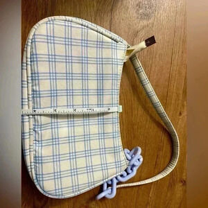 shoulder Bag blue and white plaid plastic chain 9x4x2 inches Y2K like new