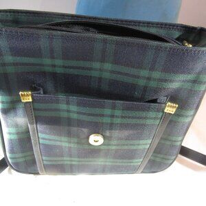 the purse has long strap, snap closure, 3" wide at bottom, 9" wide on the top