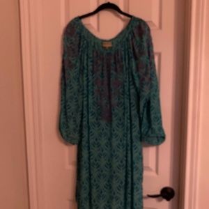 Sigrid Olsen dress-soft turquoise and blue with periwinkle embroidery