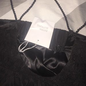 super sexy! looks great with black underwear ;) never worn and has nice details such as the cross back and buttons!