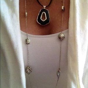 vintage silpada two sided versatile necklace, hematite and onyx with sterling silver on leather