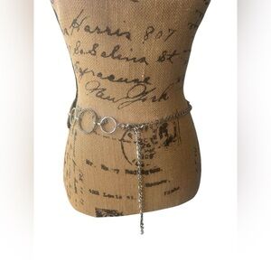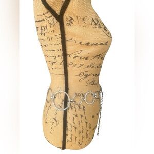 silver and faux diamond Circle Adjustable Chain Belt Length 37”