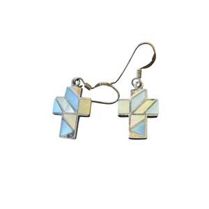 silver cross earrings with inlaid mother of pearl earrings vintage jewelry .925