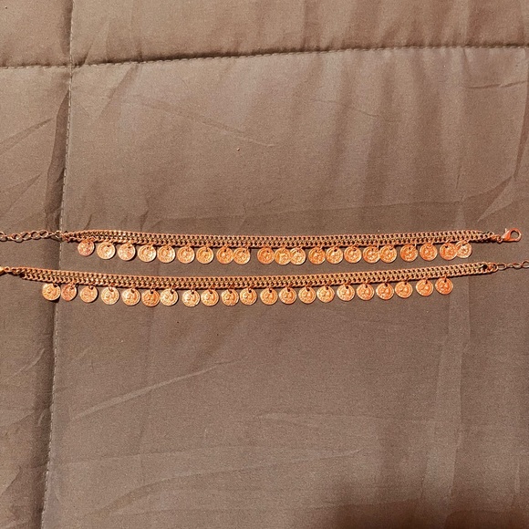 silver dangle anklets with turquoise blue you can’t really see in the pictures