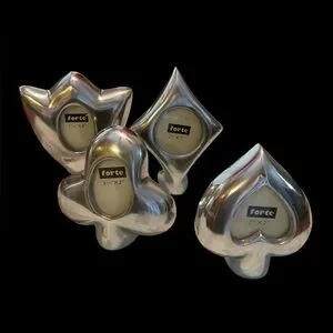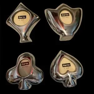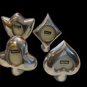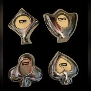 Set of four 4” tall frames. ♠️♥️♣️♦️ Holds a 2x2” picture. Can also be used as place setting names. Great for poker night.