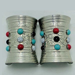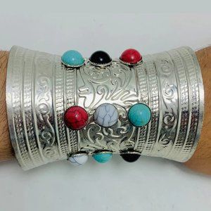 single Boho Cuff Kuchi Cuff Bracelet With Multicolor Stones
