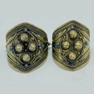 This statement tribal handcuff with turquoise stones is a lightweight jewelry item that can be worn in any event. This tribal piece will be a perfect match with traditional and modern attires.
