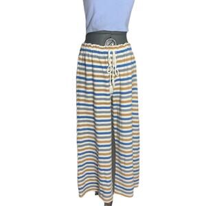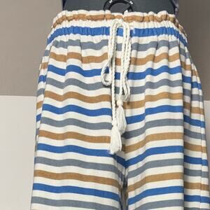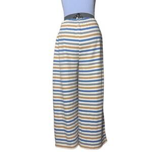 sisstrevolution striped wide leg pants Clearwater knit women's size medium tan, blue, off white