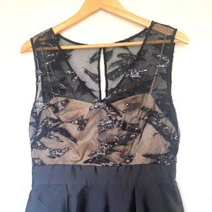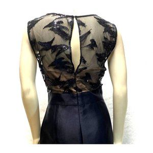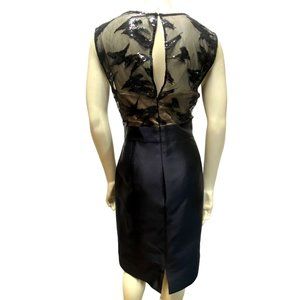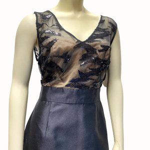 size 10 dress Kay Unger black sequin bodice cocktail party lined mesh top v-neck