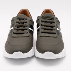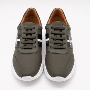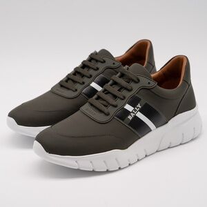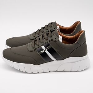 size 12 Bally Bronnye Green Olive Sneakers Leather White Fango